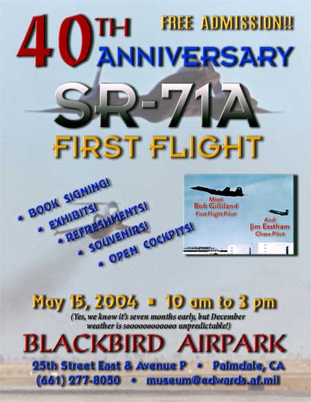 The 40th anniversary of the SR-71 will also be observed during the evening.