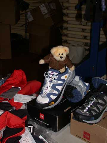 One of the race sponsers, North Face had set up a booth, so I tried on some shoes....they fit pretty good!
