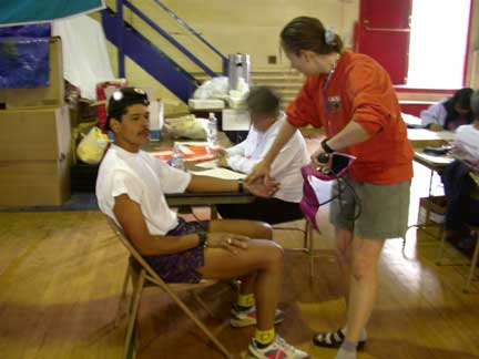 The check up is at the Leadville Community Center, and here is José waiting outside the center it's around 6:30 or so AM. Then so more folks arrived....