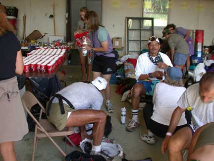 José made it to Winfield an hour before the cut-off(the cut-off is at 6 pm), the runners have been running since 4 AM, that's 14 hours! He is starting to feel better, he wasn't feeling well during the first part of the race.....