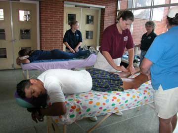 Matt Mahoney getting a shoulder massage at Fish Hatchery....