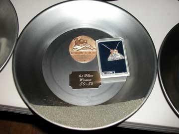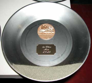 The age group awards, this is what the women get, an actual mining pans, and the a belt buckle and a Leadville 100 necklace.