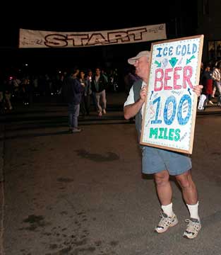 Jose telling Joan what he would like from the aid station, 12:42 AM Saturday, 39.5 miles into the race.