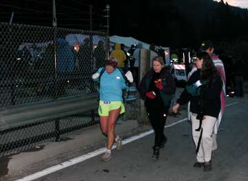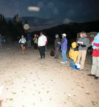 A runner arrivng at May Queen Aid Station, around 6:30 AM Saturday , 13.5 miles into the race.