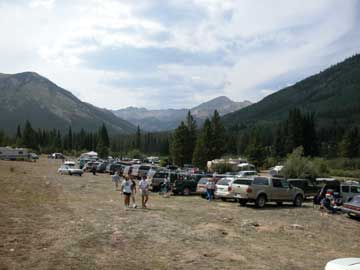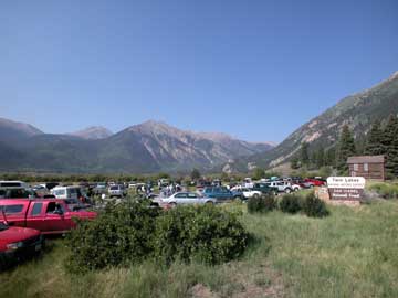 Twin Lakes crew parking...... the runners run through this parking lot.