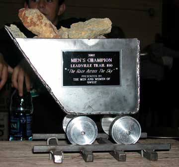 The age group awards, this is what the women get, an actual mining pans, and the a belt buckle and a Leadville 100 necklace.